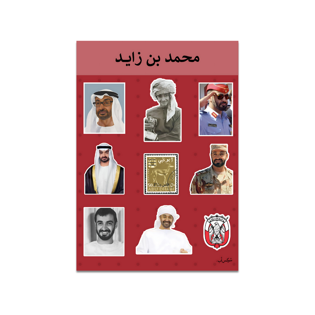 UAE-inspired MBZ sticker sheet for laptops, phones, notebooks, and gifts.